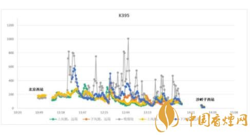 未禁煙的普速列車K395車箱內(nèi)空氣質(zhì)量(PM2.5) 圖片來源中國控?zé)焻f(xié)會官網(wǎng)