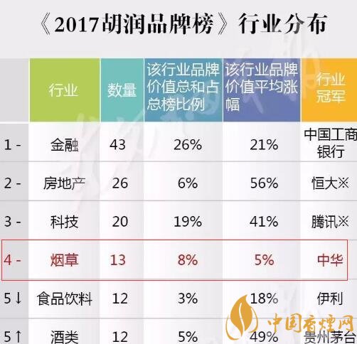 一年一度不能錯過的2017胡潤品牌排行榜已經(jīng)公布了,作為煙民一員,你知道今年的煙草企業(yè)在2017胡潤品牌排行榜的情況嗎?下面香煙網(wǎng)小編為大家整理介紹本次發(fā)布的煙草企業(yè)榜單的品牌數(shù)據(jù)情況吧!