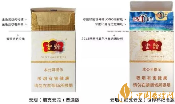 2018世界杯版云產(chǎn)煙新裝上市 五種規(guī)格世界杯對比圖