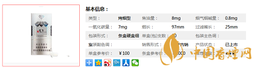 | 類(lèi)型 :烤煙型 | 焦油量 :8mg | 煙氣煙堿量 :0.8mg | 一氧化碳量 :7mg |