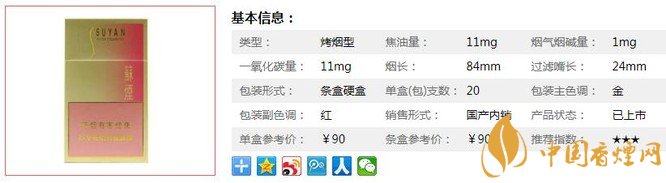 一、蘇煙金砂2香煙價格