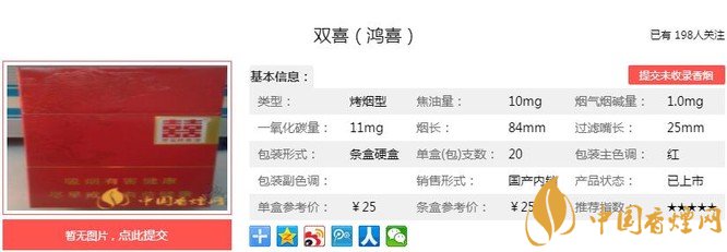一、雙喜鴻喜香煙價(jià)格