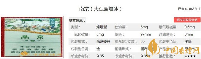 以上便是由香煙網(wǎng)小編為大家介紹的關(guān)于南京大觀園爆冰好抽嗎 南京大觀園爆冰價(jià)格及參數(shù)介紹的相關(guān)信息,想要了解更多有關(guān)內(nèi)容請(qǐng)點(diǎn)擊:七匹狼軟灰多少錢一包 七匹狼七周年推出的傲人精品