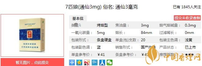 三、七匹狼通仙3mg香煙參數(shù)