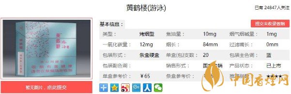 黃鶴樓游泳,根據(jù)口感而言,這款煙的價格優(yōu)勢并不是很強,但是對于有著黃鶴樓情懷的朋友來說,65 元一包的價格,還是略微可以接受的。如果是個人而言的話,這款香煙性價比較低,價位有些虛高的感覺,但是最終還是因人而異吧。
