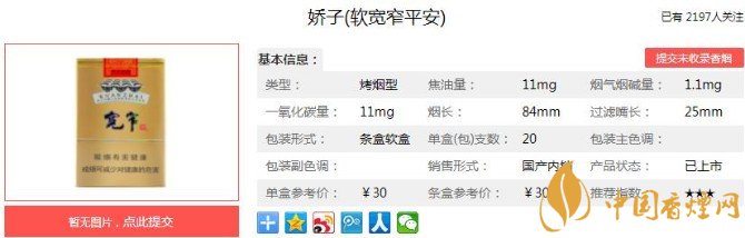 嬌子寬窄平安價格30元一包傳承寬窄系列的口感!
