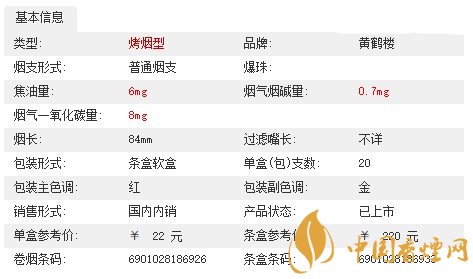 黃鶴樓國色天香煙價格及參數(shù):
