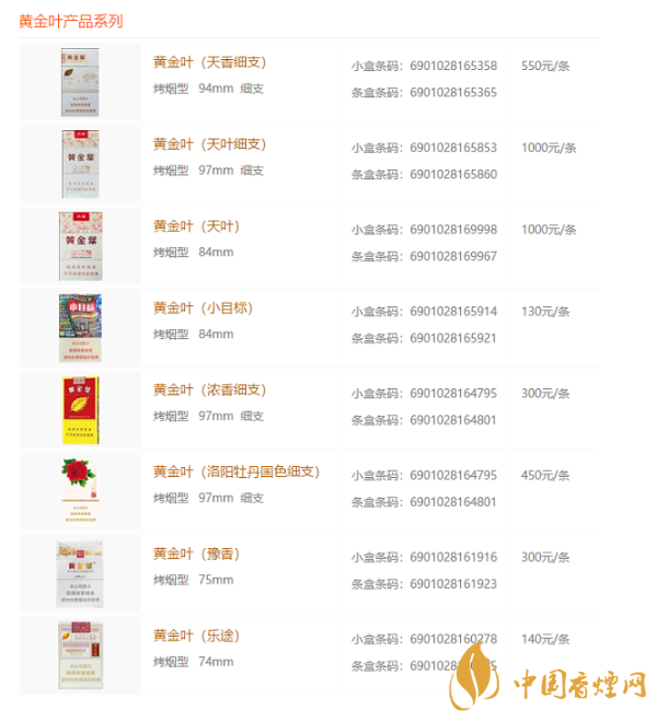 黃金葉細(xì)支2025最新價格及圖片大全
