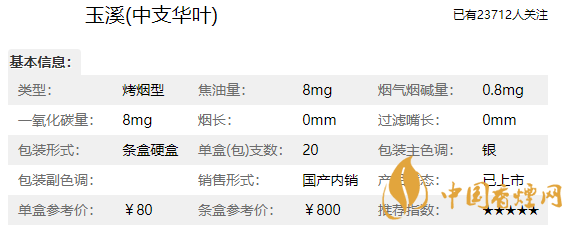 玉溪中支華葉香煙參數(shù)