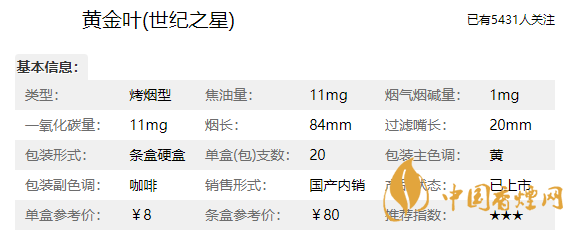 黃金葉香煙品牌定位為中式經(jīng)典醇香型烤煙,一烤透本香、二烤出凈香、三烤成醇香是它的工藝,這款世紀(jì)之星也是完美的繼承了品牌的意志,這款香煙品質(zhì)方面非常的好,那么我們在介紹這款黃金葉香煙價(jià)格表和圖片之前,先來了解一下黃金葉世紀(jì)之星多少錢一盒,它的零售參考價(jià)為8元/包。