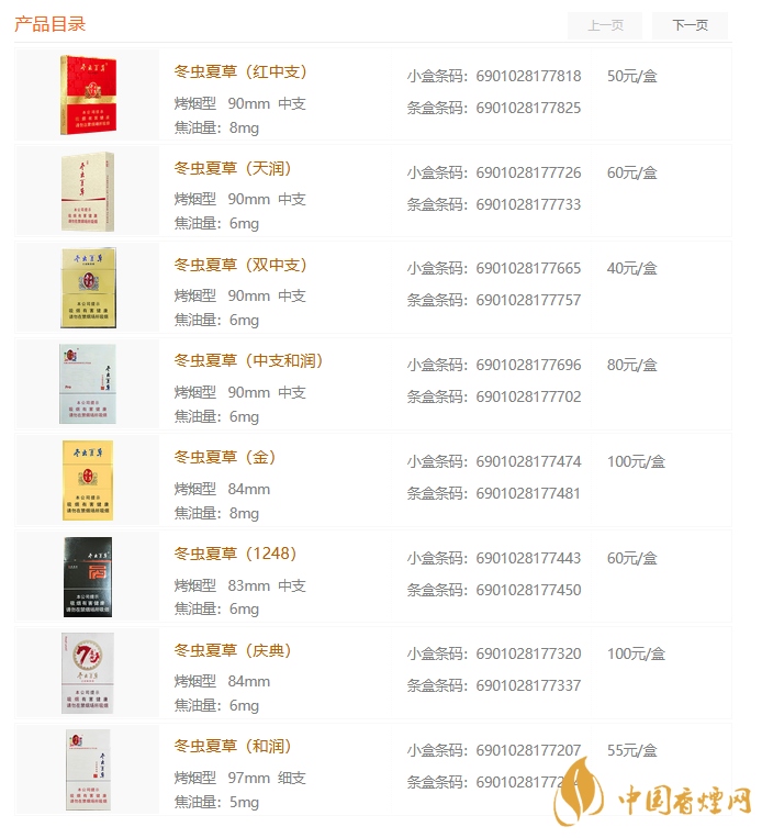 冬蟲夏草香煙價格表 冬蟲夏草香煙多少錢一包