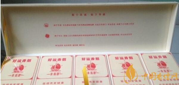 在黃鶴樓香煙大全及價(jià)格中,好運(yùn)有別于樓樓其他品系,凸顯簡(jiǎn)單、樸實(shí),沒有以前黃鶴樓香煙的那種花里胡哨的感覺。除了黃鶴樓和好運(yùn)的品牌標(biāo)識(shí)之外,正反面都印有紅色帆船,和“一帆風(fēng)順”的字樣。