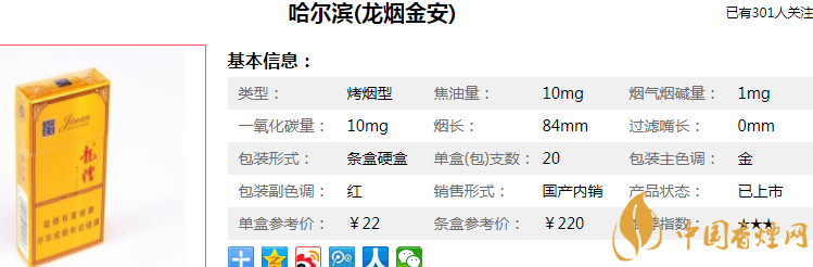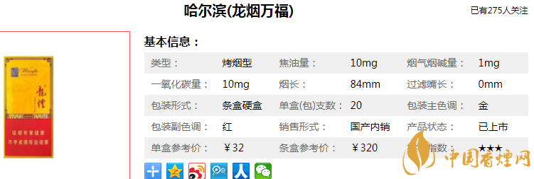 哈爾濱龍煙多少錢一包/條 銷量最好的哈爾濱龍煙(系列)價格表(6款)