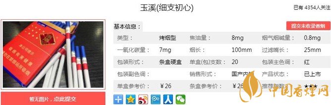 玉溪細支初心煙支長100mm,過濾嘴長:25mm,應用自主特色加香技術(shù),彰顯涼茶生津回甜與煙香醇和飽滿的有機融合,強化清新、自然、優(yōu)雅的復合清香型風格。下面我們一起來看玉溪細支初心的參數(shù)信息:焦油量:8mg 煙堿量:0.8mg 一氧化碳量:7mg