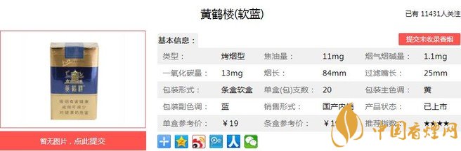 三、黃鶴樓軟藍(lán)香煙參數(shù)