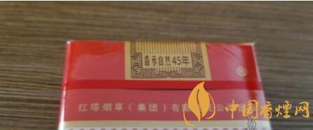 煙封的中間,頂部,變形的中國結(jié)中有45字樣。