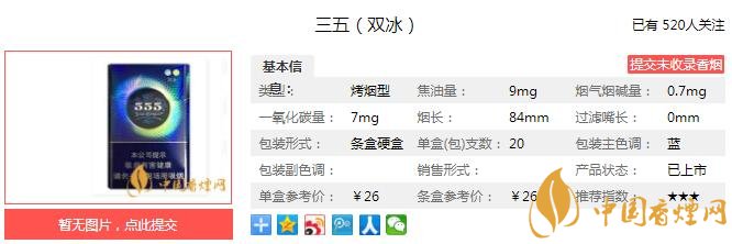 555牌卷煙創(chuàng)牌于1895年,創(chuàng)始人Albert Levy爵士在美國(guó)獲得靈感并在英國(guó)注冊(cè)State Express 555品牌,是英美煙草公司出品的有著悠久歷史的著名品牌,國(guó)內(nèi)煙民熟悉的有555金、555弘博、555環(huán)尊、555藍(lán)尚、555國(guó)際等品種和系列。555屬英式烤煙型卷煙。下面就由香煙網(wǎng)小編帶大家一起來(lái)了解三五雙冰的相關(guān)信息。