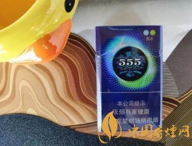 整體以藍(lán)色作基色調(diào),上半部有一個(gè)大號(hào)的圓形圖案,圖案中心是經(jīng)典的555標(biāo)識(shí)。圓形圖案的周圍均勻交叉著白色的細(xì)線,左上半部是淺藍(lán)色的光暈,右下半部是綠色的光暈,雙色雙爆,正對(duì)應(yīng)著右上角雙冰的圖樣標(biāo)識(shí)。煙盒背部與正面基本一致。“雙冰”的外部采用幻彩包裝,炫目多變,內(nèi)部為了提高保鮮性采用再封包裝。