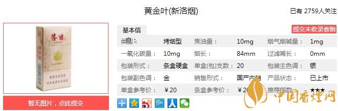 三、黃金葉新洛煙香煙參數(shù)