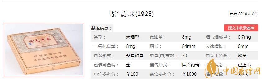 以上就是小編為大家整理介紹的紫氣東來香煙1928的價(jià)格參數(shù)以及煙民品吸評價(jià),希望為大家提供幫助。想了解更多香煙信息,請關(guān)注香煙網(wǎng)!