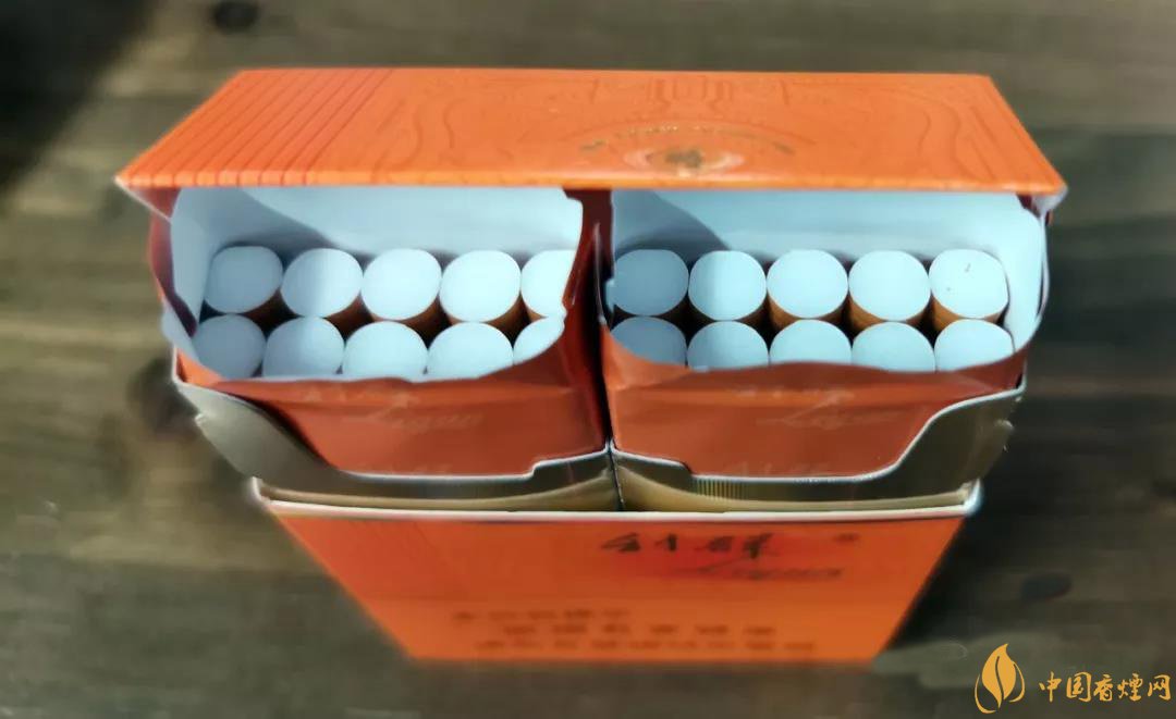 翻開橙色的內(nèi)襯紙,可以看到兩個盒腔每個里面都是10支煙,采用的是雙排5支的結(jié)構(gòu)。這樣的分腔式結(jié)構(gòu),讓產(chǎn)品在收納和取用時更加方便,也算是產(chǎn)品的一個創(chuàng)新點(diǎn)之一。
