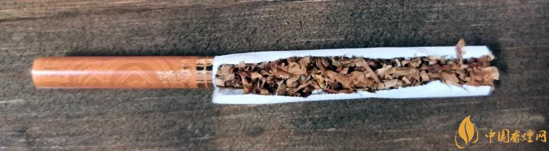 煙支濾嘴是采用的暗棕色,上面有與煙包主畫面呼應(yīng)的圖案。濾嘴與卷煙交接處是兩道金色的線圈,整體煙支的檔次感呈現(xiàn)的還不錯。