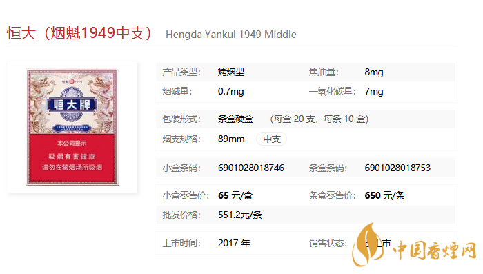 “恒大(煙魁1949中支)”煙支周長(zhǎng)介于細(xì)支煙和常規(guī)煙之間,在吸味和滿足感上做到了均衡和統(tǒng)一。