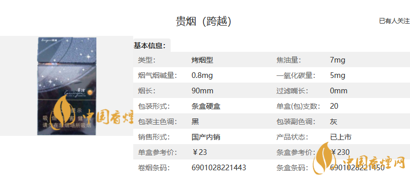 售價為23元一包。最出名的一款陳皮味爆珠細支煙,在外觀上和上一款煙形成了鮮明的對比,深邃的黑色上星光點點,非常高雅,大氣。