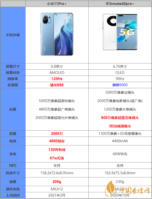 小米11Pro+最為小米11系列中最高配的手機(jī)和之前的華為mate40pro+相比較的話到底是哪一款手機(jī)有著更加好的性能表現(xiàn),這兩款手機(jī)又什么區(qū)別?哪款手機(jī)更值得入手?下面香煙網(wǎng)小編將為大家?guī)硇∶?1Pro+和華為mate40pro+參數(shù)對比,感興趣的朋友一起來看看吧!