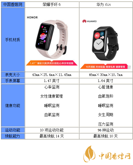 以上就是小編收集到的華為fit和榮耀手環(huán)6區(qū)別在哪-華為fit和榮耀手環(huán)6對(duì)比分析的相關(guān)內(nèi)容,以上內(nèi)容均來(lái)源于網(wǎng)絡(luò),僅供參考,一切以實(shí)際為準(zhǔn),更多最新數(shù)碼資訊請(qǐng)關(guān)注香煙網(wǎng)。