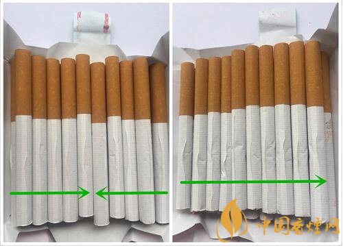 同一包卷煙內(nèi),真品卷煙煙支卷接紙有兩個(gè)相反的搭口方向;而假煙的煙支卷接紙搭口方向均為同一個(gè)朝向。
