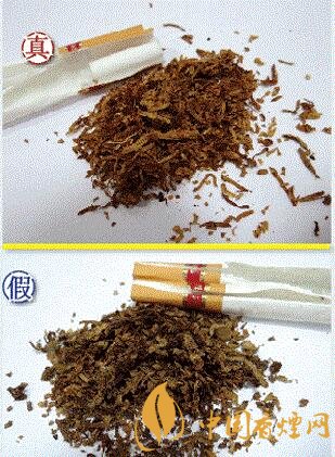 真品煙絲摻配均勻,采用獨特的“三烤”工藝,煙絲顏色呈現(xiàn)金黃色,煙絲彈性油潤性好;假煙煙絲摻雜摻假,煙梗煙末較多,煙絲未加膨化處理,煙絲碎屑多,與真品存在顯著差異。