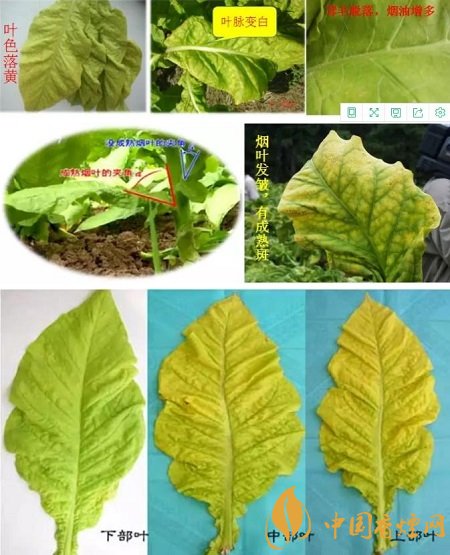 葉色落黃:煙葉落黃明顯(青黃各半)。