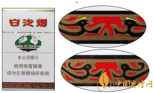 白沙(硬)因江南名泉式 ---“白沙古井”而得名,包裝以“白沙古井” 為背景,象征吉祥如意的雙鶴圖形為主體圖案。產(chǎn)品不斷應(yīng)用新技術(shù),科學(xué)配方,合理配香配料,口味特點(diǎn):煙香濃馥、諧調(diào),余味純正舒適?,F(xiàn)就該卷煙小盒鑒別方法介紹如下: