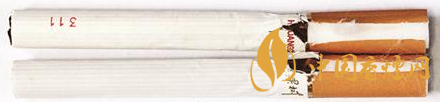煙支過濾嘴及煙絲差異對比:真品煙支采用單一醋纖濾嘴,長度為25mm,煙絲切絲寬度均勻,煙絲疏松、光澤油潤性好、含碎末少。煙絲結(jié)構(gòu)為葉絲、膨脹葉絲、膨脹梗絲和再造煙葉;假煙煙支過濾嘴較短,長度約為21mm,制絲工藝粗糙,光澤油潤性差、煙絲中含碎末較多,大量梗絲未經(jīng)過膨脹處理,一般無膨脹葉絲和再造煙葉,與真品特征存在明顯差異。