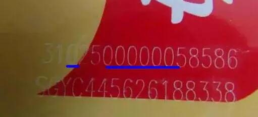 真煙在第一排前五位是顯示年月日時(shí)間的數(shù)字,第一排最后兩位數(shù)字一般在01—50之間。假煙條碼的特點(diǎn):而假煙條碼有可能在此會(huì)有疏漏。如圖假煙所示,第一排最后兩位數(shù)字為86,不符合真煙條碼特征。