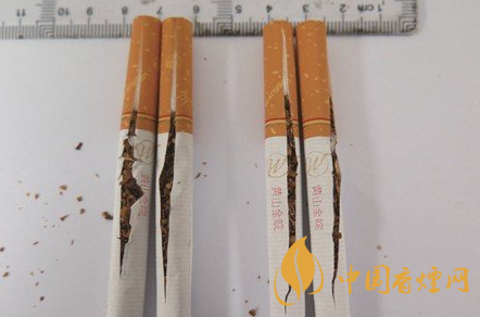 煙絲結(jié)構(gòu)差異對(duì)比:真品煙絲顏色呈現(xiàn)出金黃色,葉絲配比多,油潤(rùn)性好,含煙末少,切絲寬窄均勻一致;假煙煙絲劣質(zhì),葉絲配比少,煙絲摻雜質(zhì)多,煙梗大、煙末多,與真品煙絲結(jié)構(gòu)存在明顯差異。